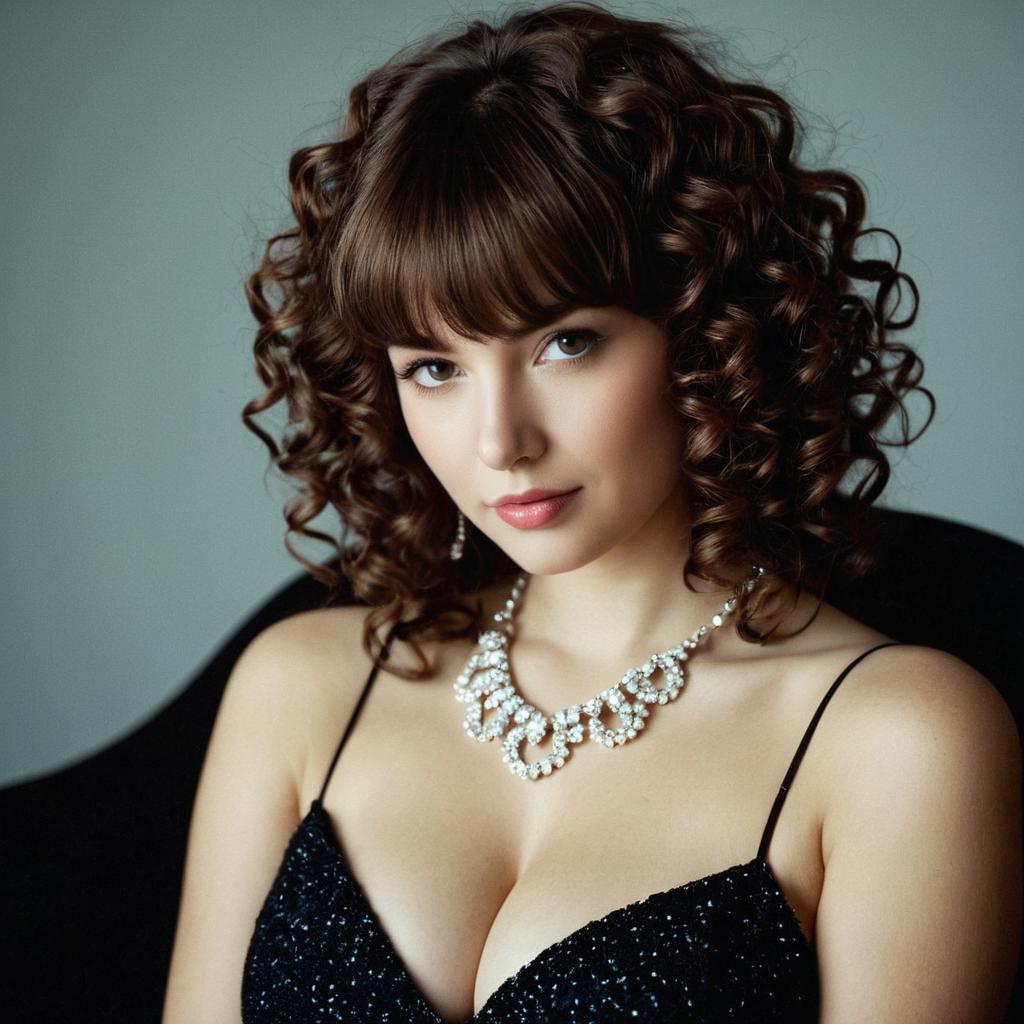 Woman with Neck-Length Curly Hair and Elegant Necklace