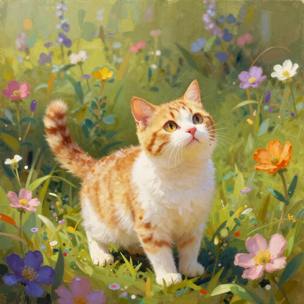 Whimsical Playful Cat in Snowy Glade