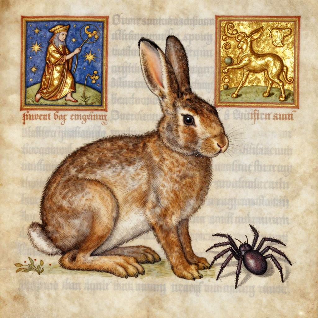 Medieval Style Hare and Spider Illustration