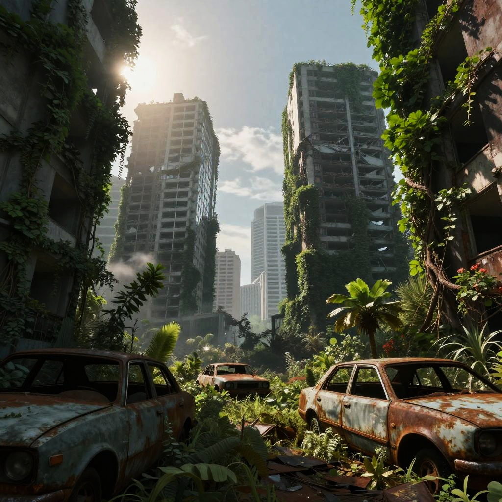 Overgrown Apocalypse with Crumbling Skyscrapers