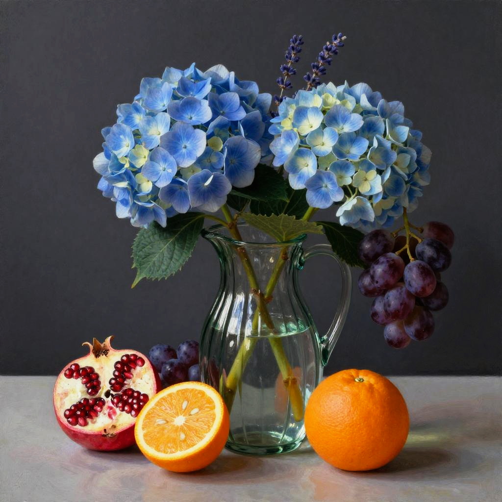 Photorealistic Pastel Delphinium Still Life