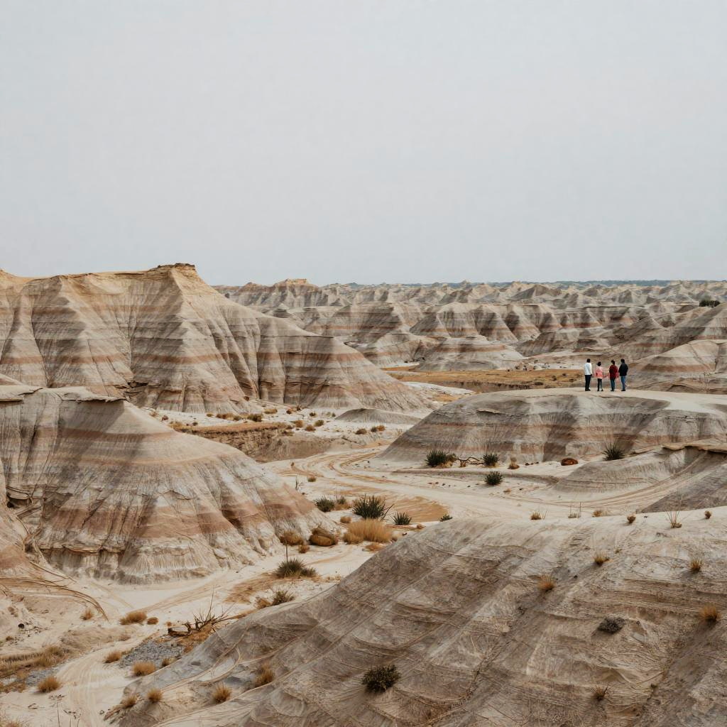Biohacking wide distant landscape scene of the tidal marshes in Louisiana Bayou, in the style of expressive impressionism, with golden reeds and dusky blues. A family in modern clothes is visible in the distance
