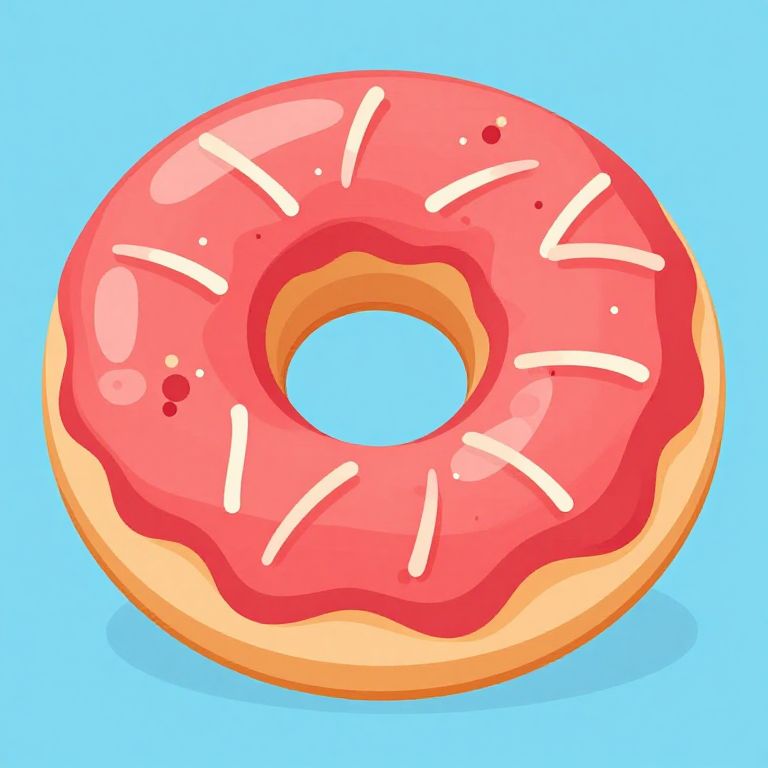 Extreme Close-Up donut red and blue background retro vintage minimal 4k flat illustration vector. HDR, HD, 8K,