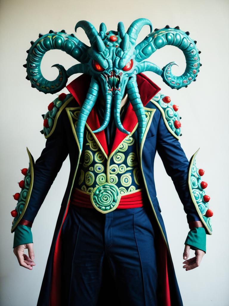 Man cosplay. Wearing Spiritomb costume. Realistic photo. Dressed as Spiritomb --sref 1400