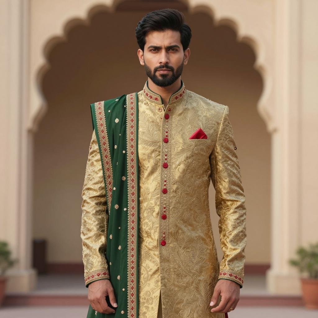 Handsome Indian Man in Traditional Bollywood Costume