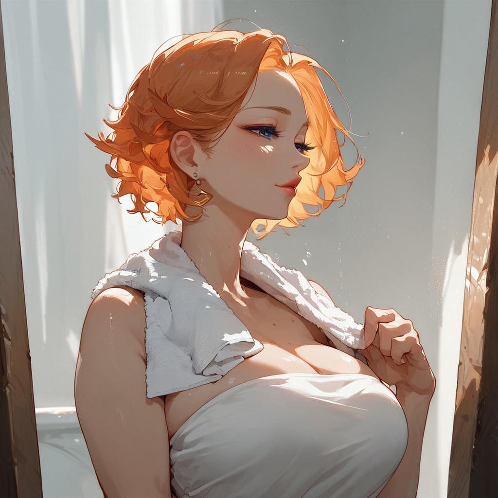 Score_9, score_8_up, score_7_up, loisgriffin, 1girl, source_cartoon, orange-hair, in the bathroom, towel