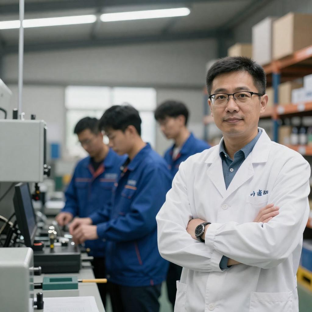Factory Supervisor in Lab Coat with Workers