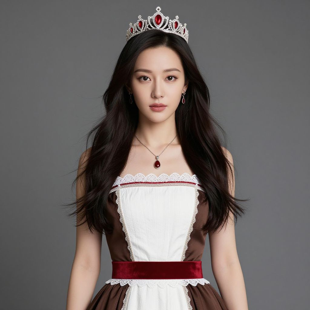 Regal Woman in Red and White Dress