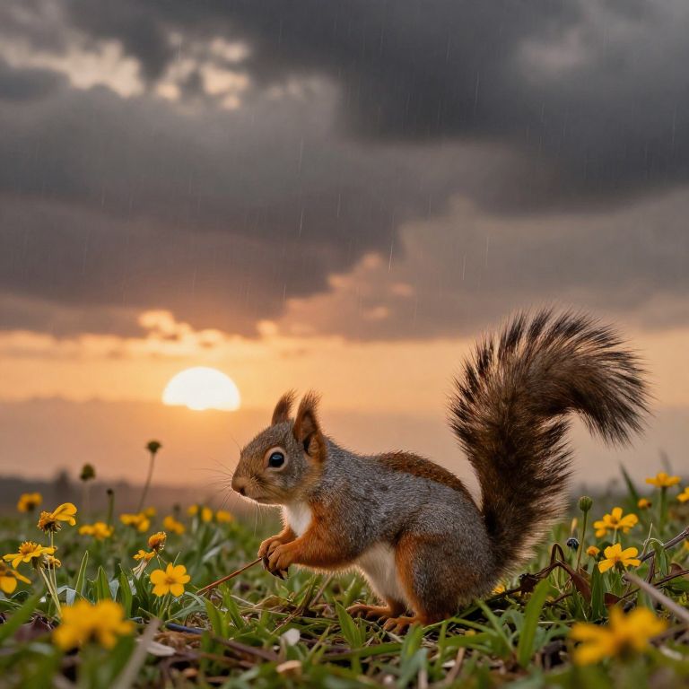 In a world where the night sky folds into the crevices of stone and the flicker of a tiny lantern ignites wonder, a squirrel stands as a guardian of secrets, its gaze reaching toward the infinite, illuminated by the warmth of hope and the whispers of curiosity.