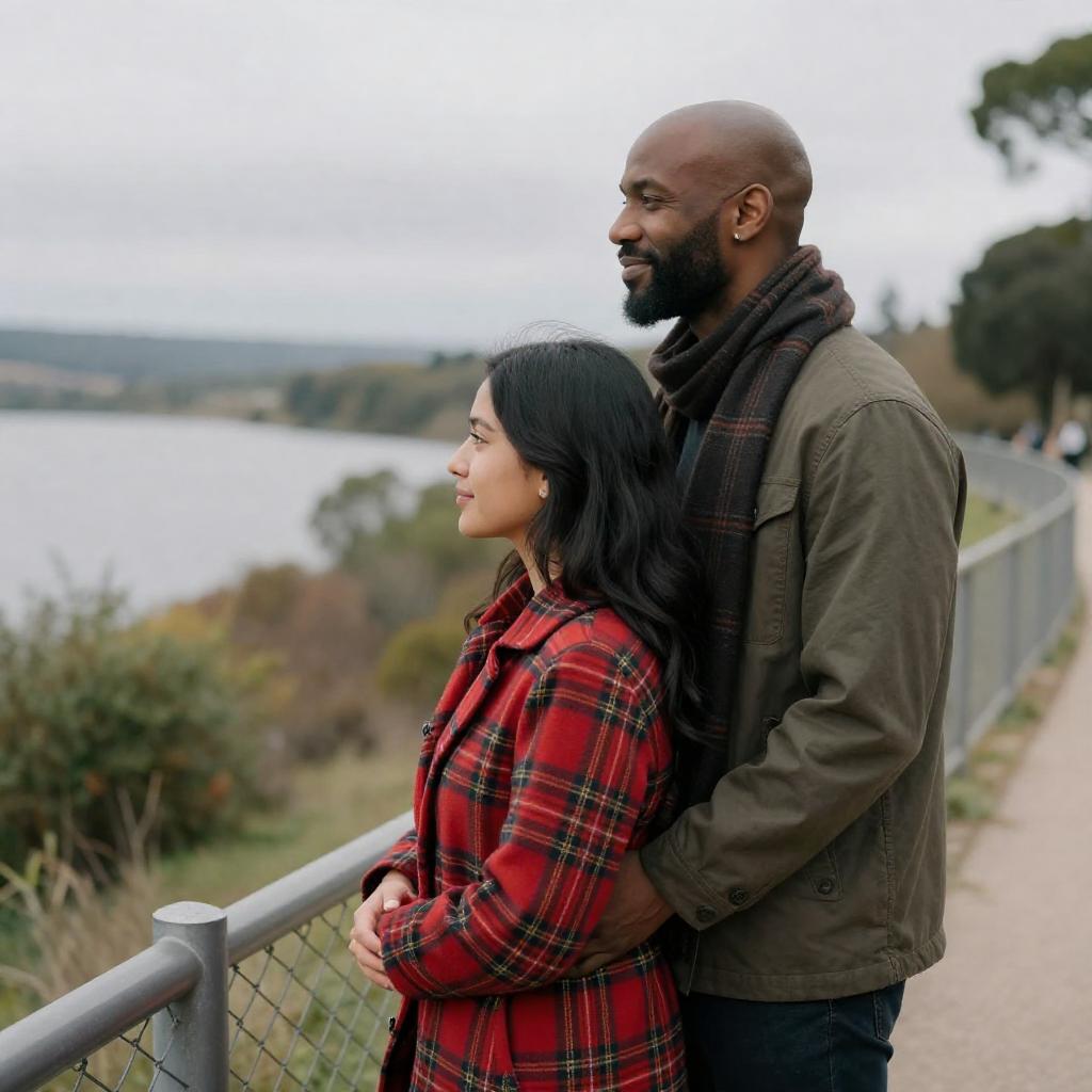Realistic Muscular Couple Embrace Outdoor Portrait