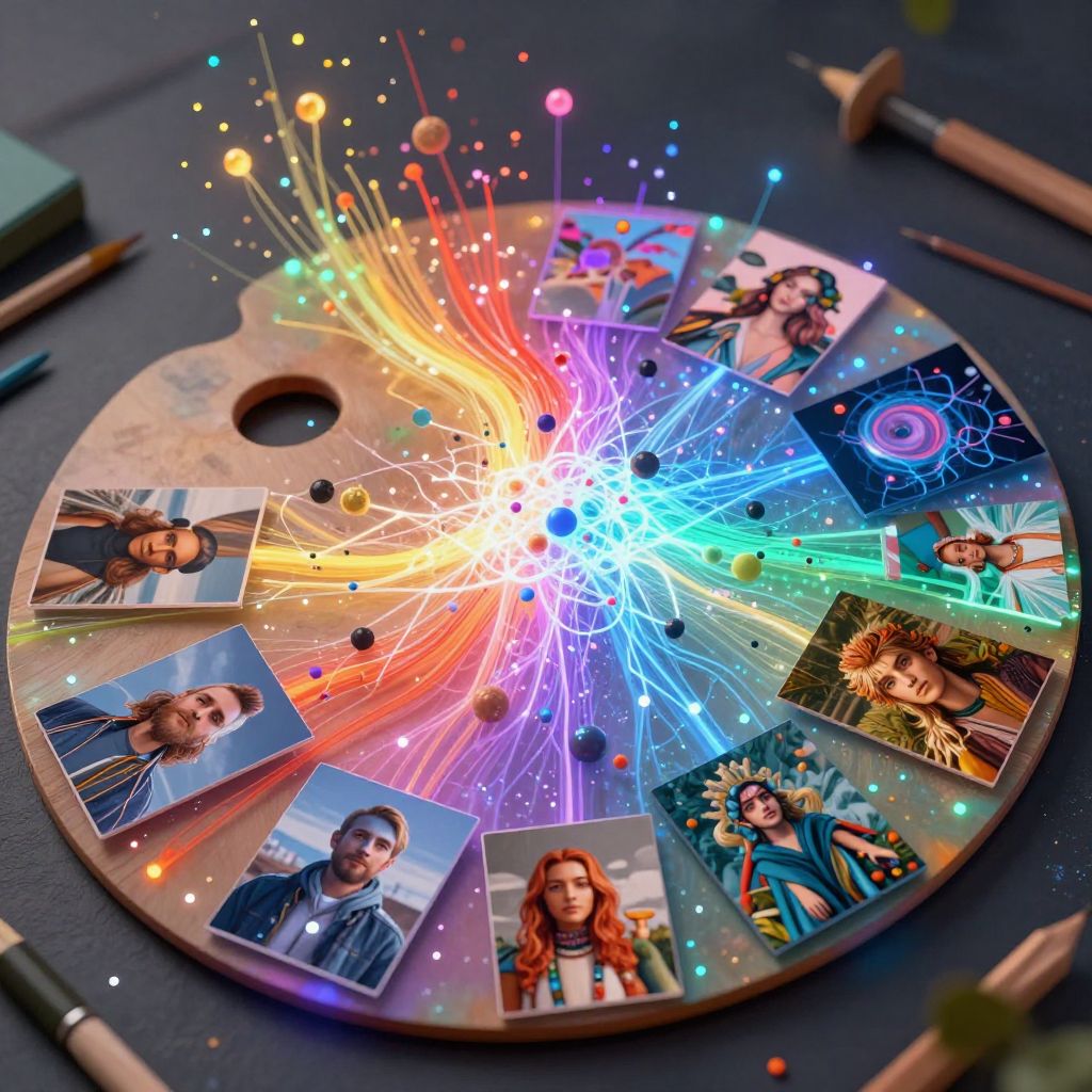 OpenAI AI image generator visualized as a digital artist’s palette in a virtual reality environment, streams of colorful pixels morphing into detailed images, futuristic design, glowing neural networks connecting various image elements dynamically