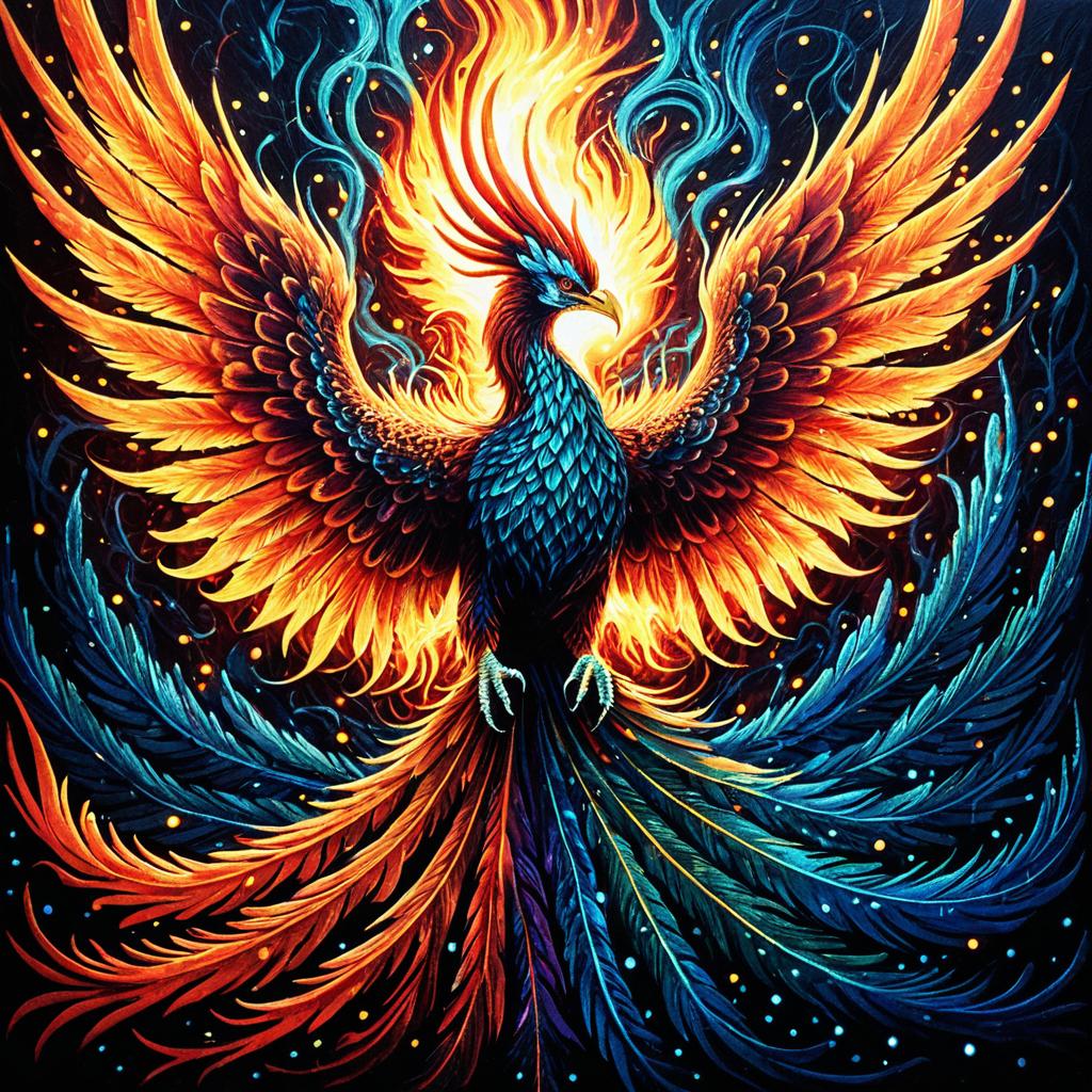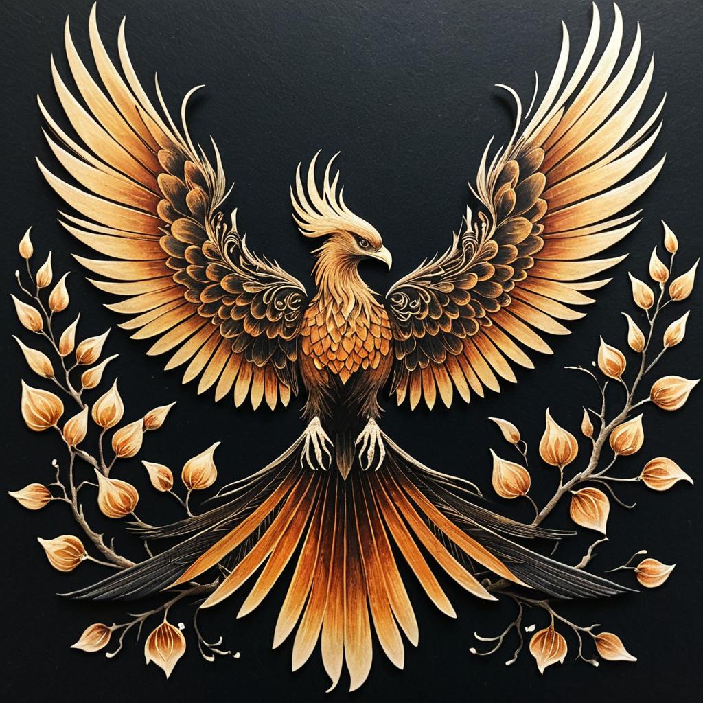 Intricate Colored Ink Phoenix with Dogwood Petals