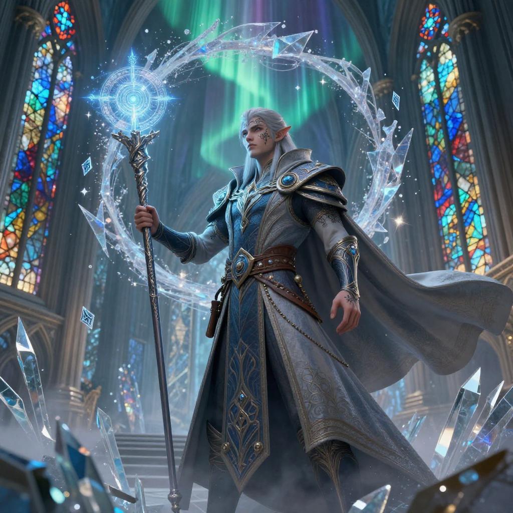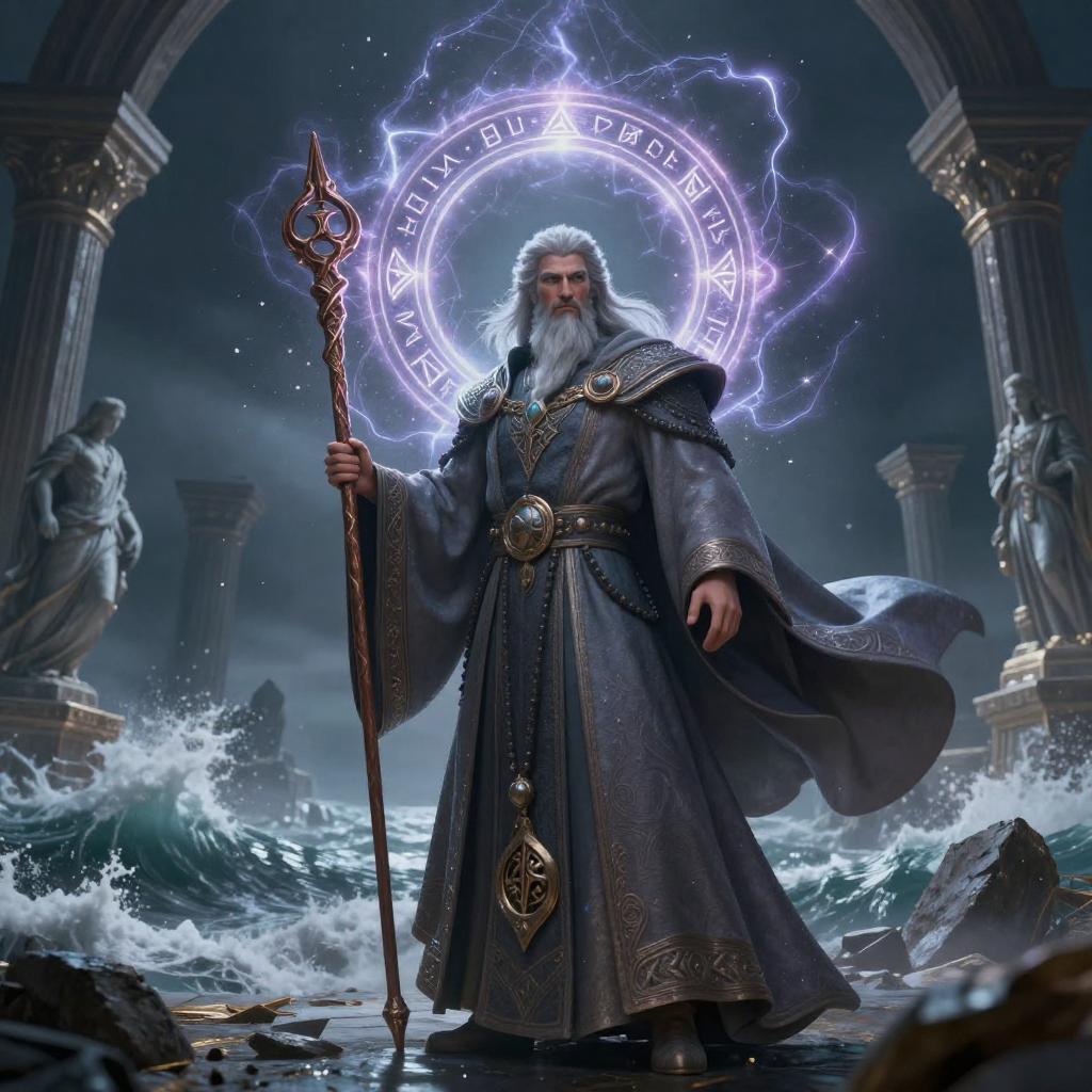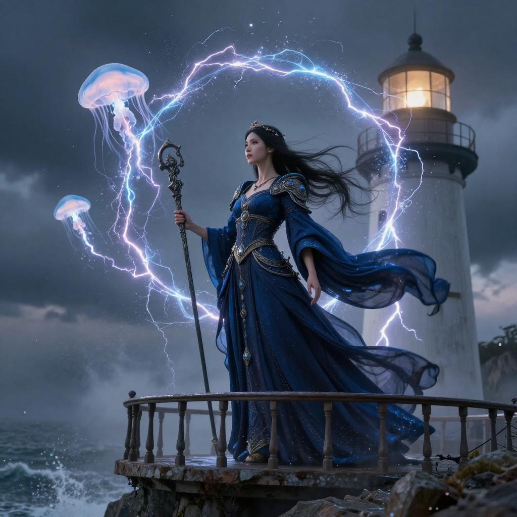 Full body, masterpiece, best quality, 3d, realistic, hdr, photoreal, stoic cybernetic monk, in bioluminescent mangrove ruins beneath a swollen blood-red moon, fog-laced water channels, hanging lanterns and twisted root-arches, casting a swirling vortex of ethereal blue flames, whimsical particles and tasteful sparkle, ornate robes and staff, wind-whipped cape, cinematic rim light, volumetric fog, subsurface scattering, ray-traced reflections, PBR materials, dynamic pose, ultra-detailed fabrics and skin, crisp focus, shallow depth of field, 85mm lens, filmic color grading, high contrast, moody atmosphere, natural color science, subtle film grain