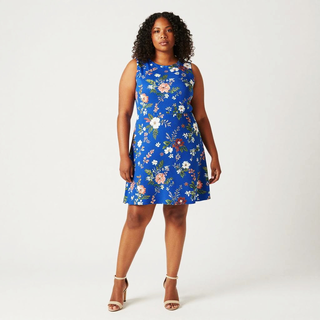 Confident Curvy Woman in Floral Dress