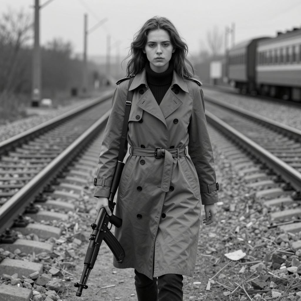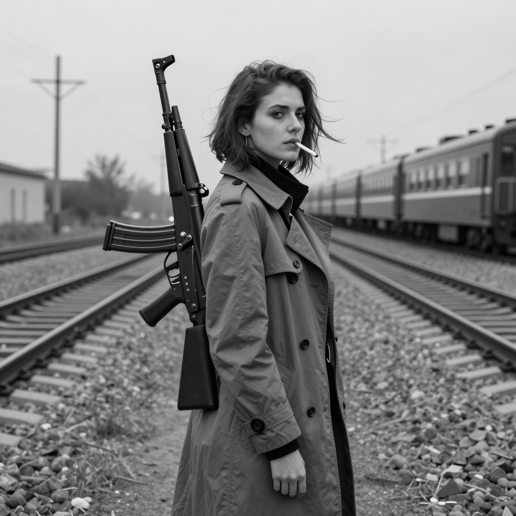 Moody Portrait of a Woman with AK-47