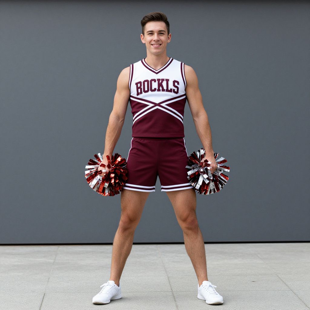 Man Cheerleading Costume, male in a cheer uniform posing for a picture