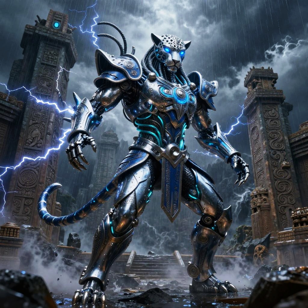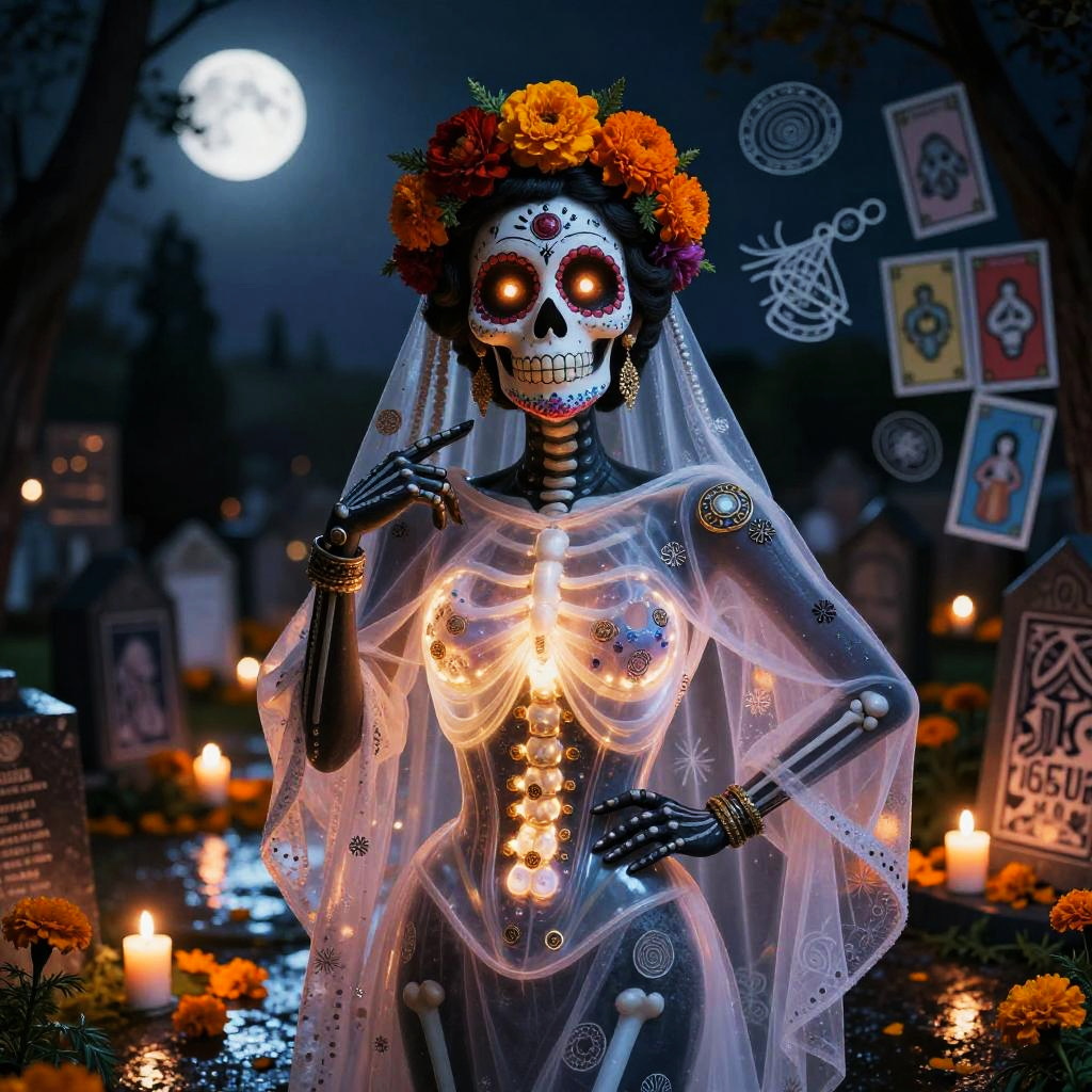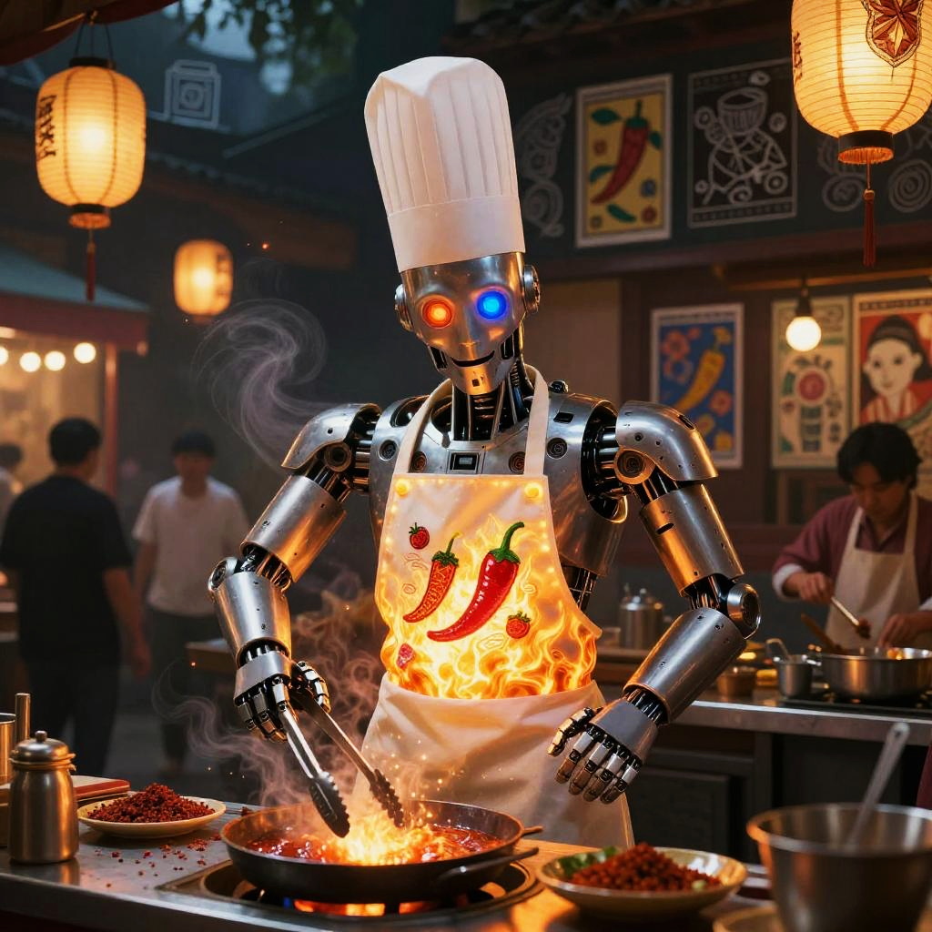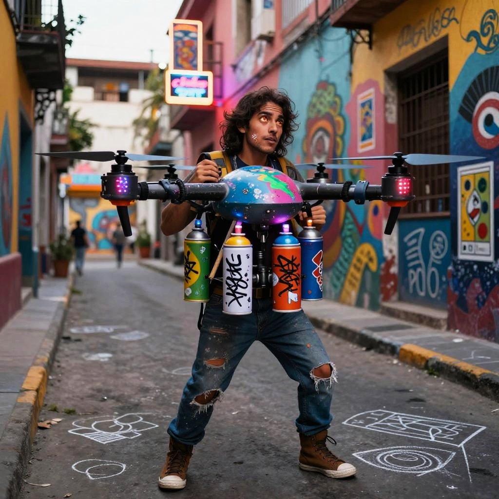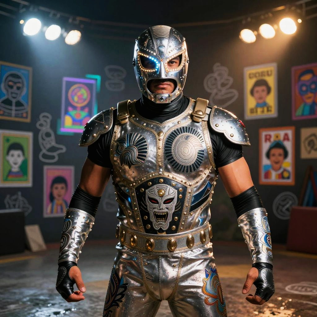 Traditional Mexican toy maker rebuilt as a multifaceted crafting automaton wearing wood-carved apron embedded with tiny robotic tools and painted vibrant folk patterns, set in bright craft workshop overflowing with hand-painted brinquedos and spinning gears, expressive luminous eyes, witty posture, cultural warmth; nostalgic humor fused with advanced AI; layered murals, chalk doodles, lotería motifs; warm rim light, cinematic depth of field, realistic metal wear, subtle film grain, wet street reflections; vibrant yet tender palette, storytelling composition, high detail, photoreal surfaces with hand-painted imperfections