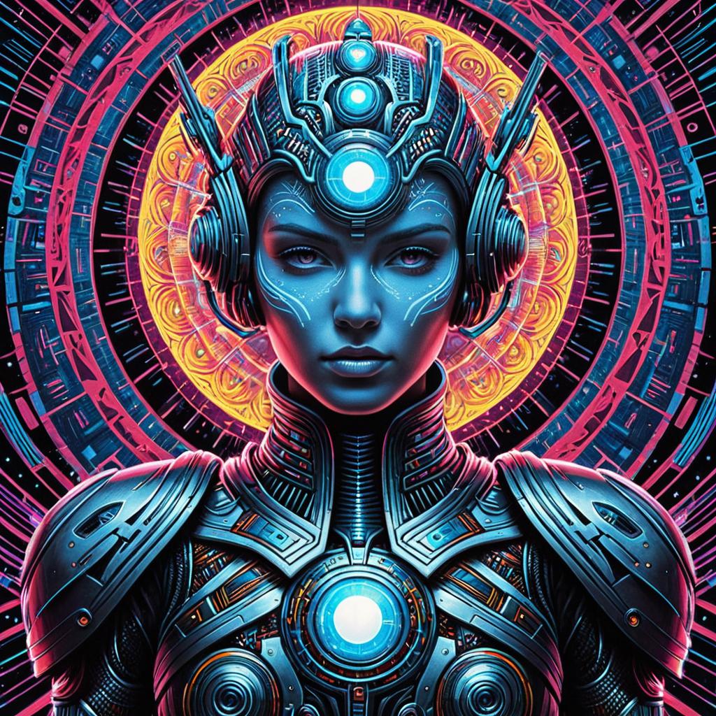 Cybernetic Mayan Female God with Psychedelic Headdress