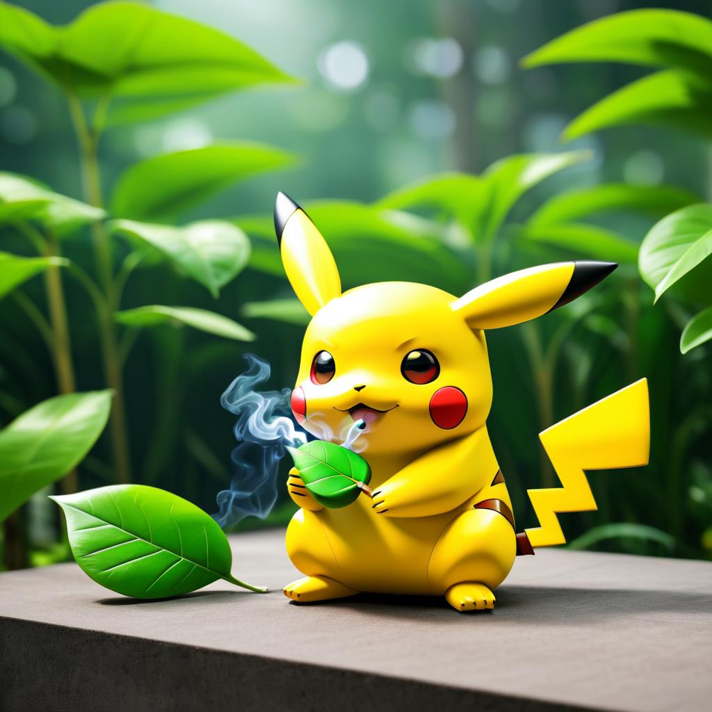 Pikachu Smoking a Leaf Outdoors