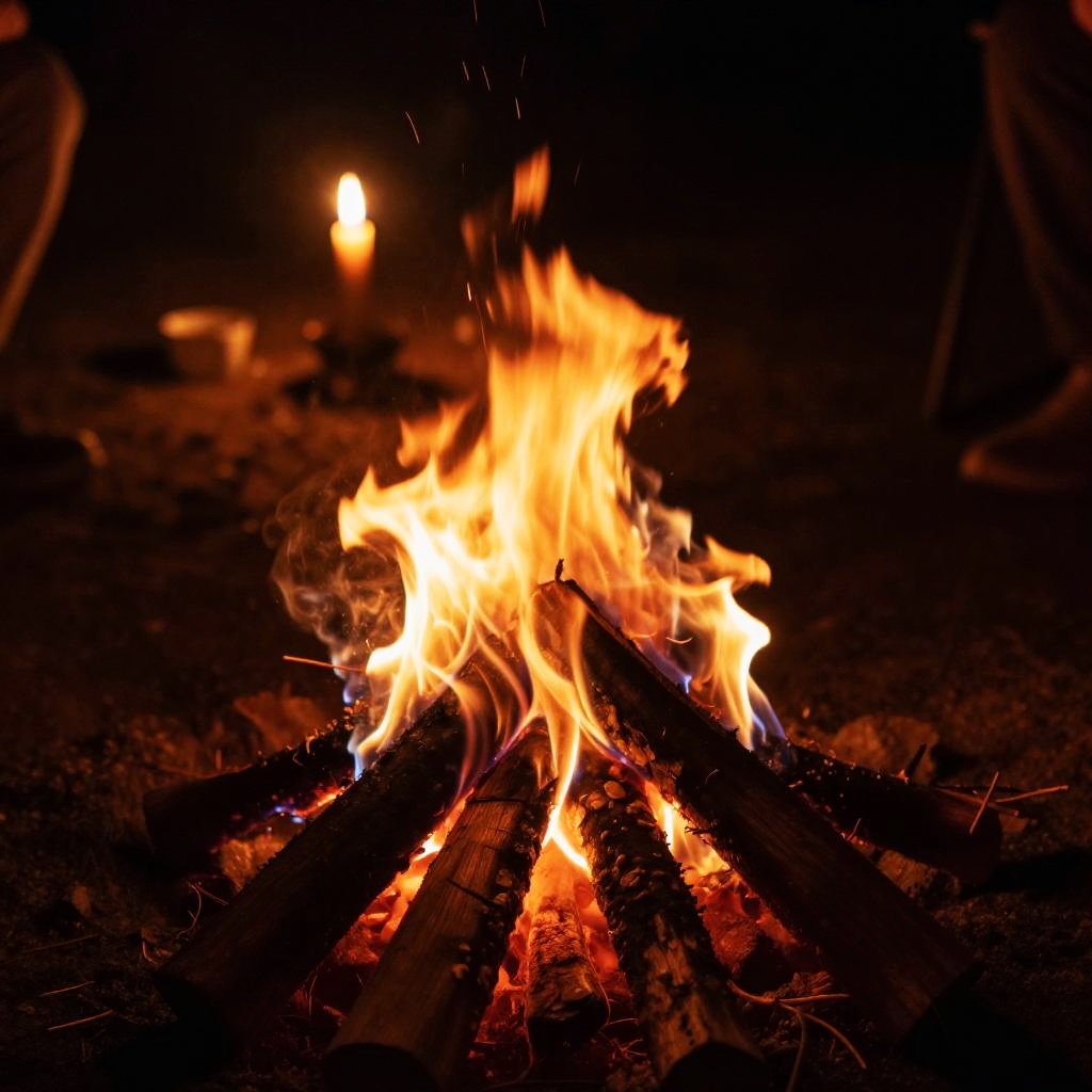 Nighttime Campfire with Candlelight Glow