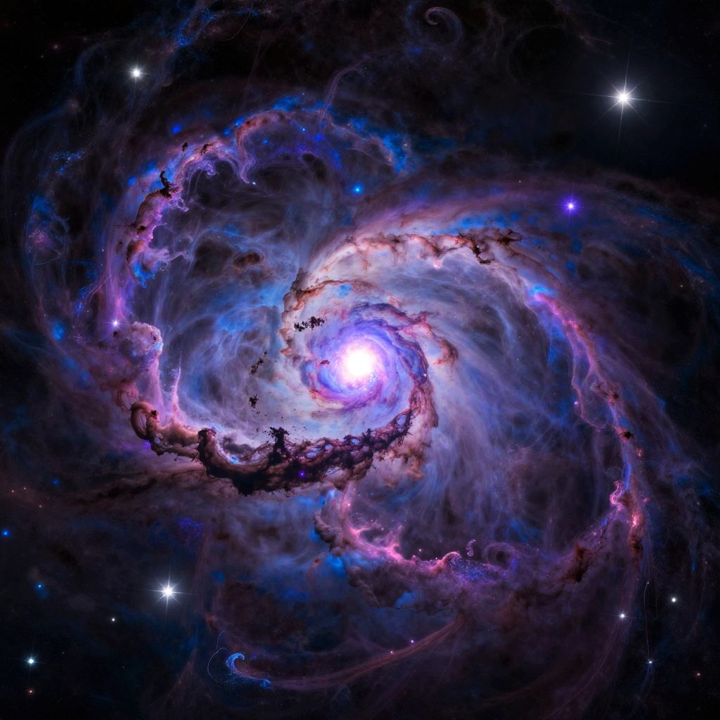Nacimiento of a star in a cosmic nebula, swirling clouds of vibrant purples, blues and pinks, dazzling sparkles and glowing particles, vast space background, high detail sci-fi artwork capturing the birth of a celestial object