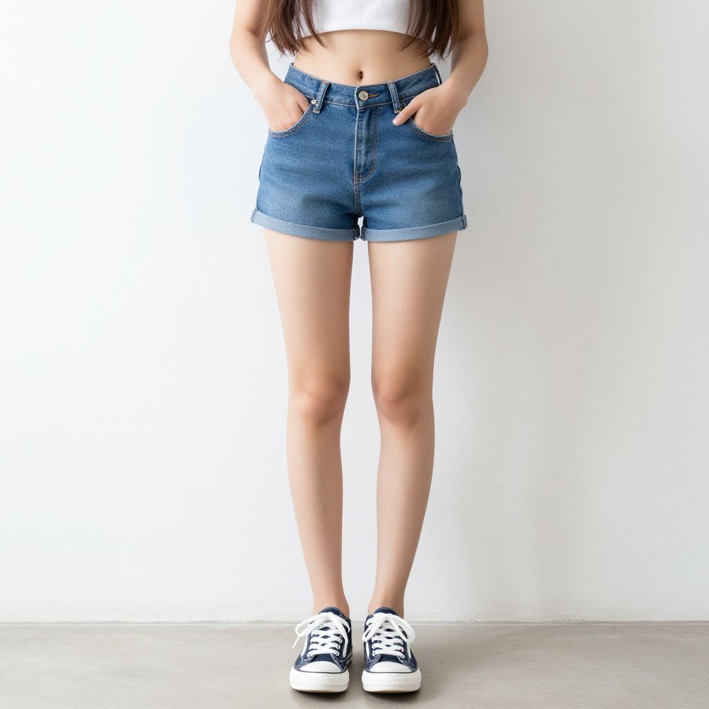 "piece short set woman, realistic, 1girl, shorts, white shorts, sandals, shirt, solo focus, white shirt, full body, blurry background, standing, blurry, brown hair, looking at viewer, navel, plant, potted plant, arms behind back, short sleeves Realistic photo of casual sexy person with pretty face"