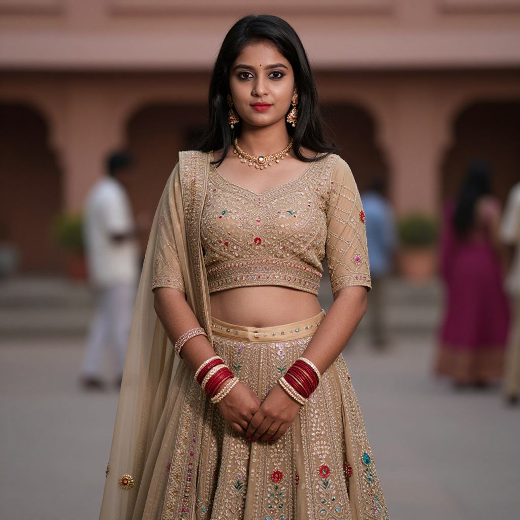Realistic Solo Girl in Engagement Lehenga