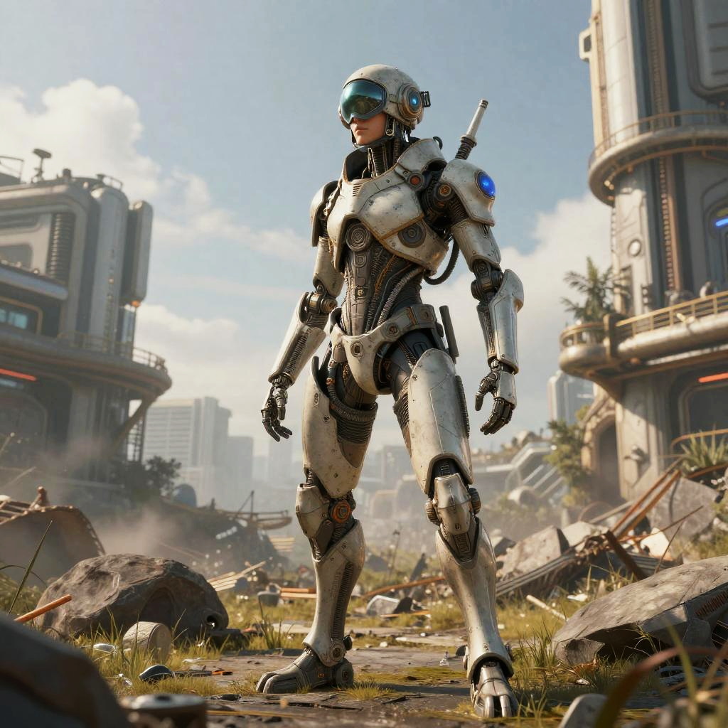 (action shot of a far metallic red/grey Crusader Industries, A2 Hercules Starlifter, long spaceship landing on the ground tilted backwards, banked turn, lands with a loud noise, lifting the dust from the ground, smoke streaming from the reactors below, in a vibrant dystopian cyberpunk city at sunset, (a female/male cyborgs in the foreground is watching:1.4), a visor over the eyes, with passengers waiting to board, people working on the spaceship, repairing it:1.3) ((black, red, white:1.1) cybernetic bodyarmor:1.2), (the armor is damaged:1.1), (layers of rust, dust and blood on the armor are visible:1.3) threatening weapon((thin film of oil on metal))movie still, film still, cinematic shot, scenery, side view, Cinematic scene, extreme long shot, view from below shot, dynamic angle, dynamic pose, science fiction style, motion blur, masterpiece, best quality, 8k, natural lighting, soft lighting, rim sunlight, wide-angle, intricate details, highly detailed, high quality, sharp focus Professional photography, bokeh, cinema composition, film framing, dramatic sunset cloudy sky, J. M. W. Turner sunset, moody, Bronze indoors, Dune movie, night, dark theme, cables, land vehicles, smoke, detailed ground, rocks, plants, vegetation, running people, arm up, (masterpiece, top quality, beautiful and aesthetic:1.2), cinematic light, volumetric lighting, rim lighting, lens flare, soft bokeh, science fiction, cyberpunk city, far perspective, Airbrush painting, Canon EF, 35mm, Vibrant Color, (lens flares:1.2), (motion blur:1.3)cinematic Rim illumination, epic, breathtaking, dramatic, completed artwork, Art by Boris Vallejo, grit, stains, rust, metal worn edges