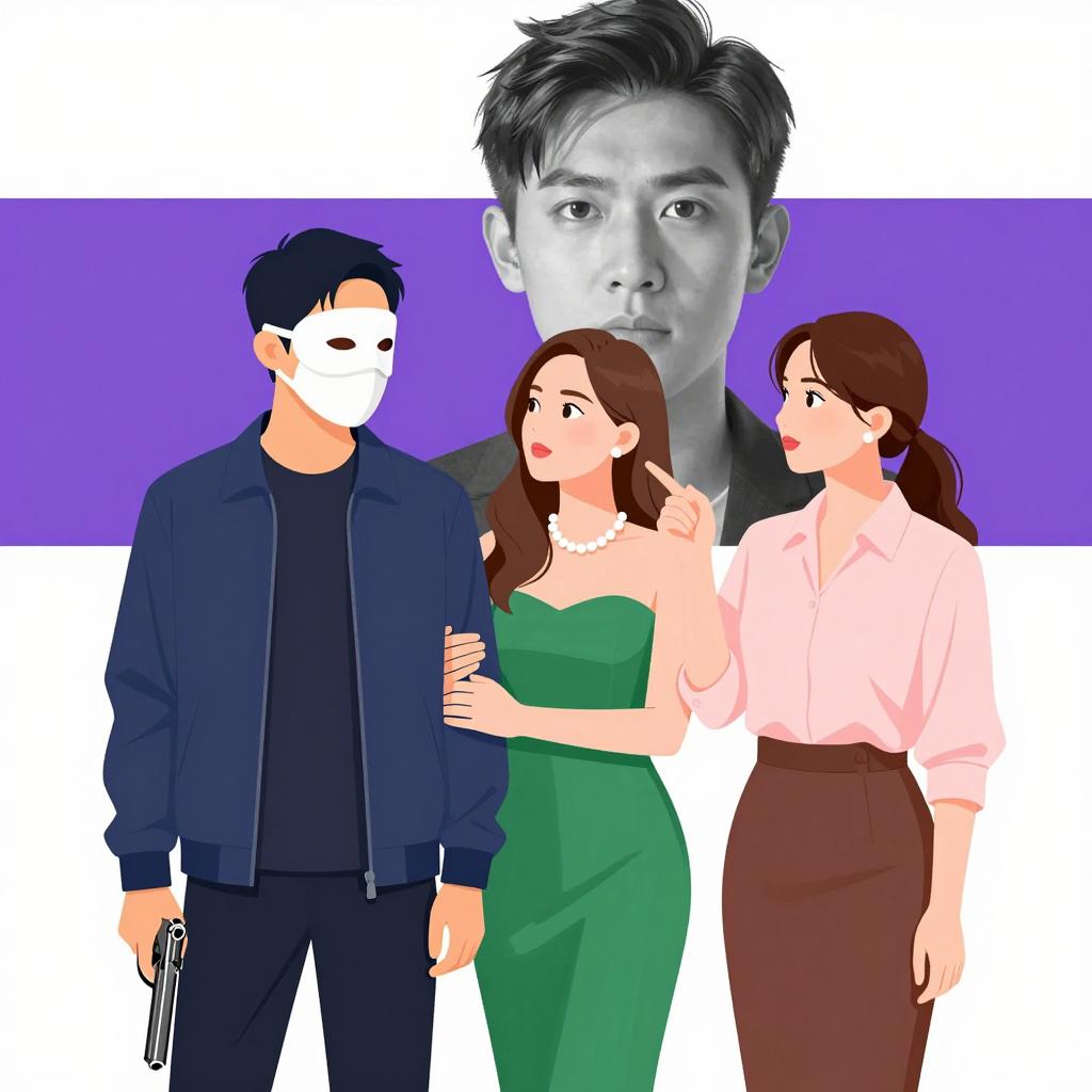 Black-and-white digital illustration of a man and woman with intense expressions. Silhouetted figures of two people walking between them. Man's face on left, woman's face on right. Both have dark hair and light skin. Background is completely black.