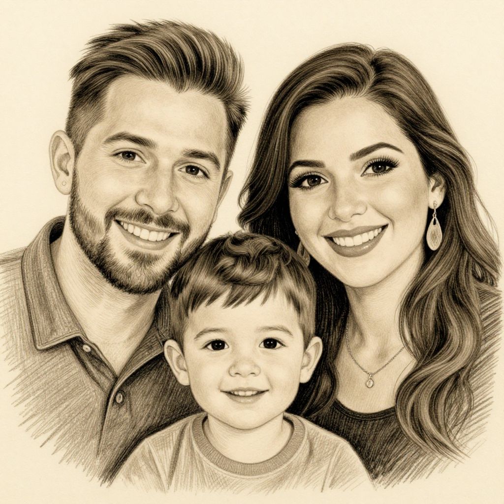 Warm Family Pencil Portrait Drawing