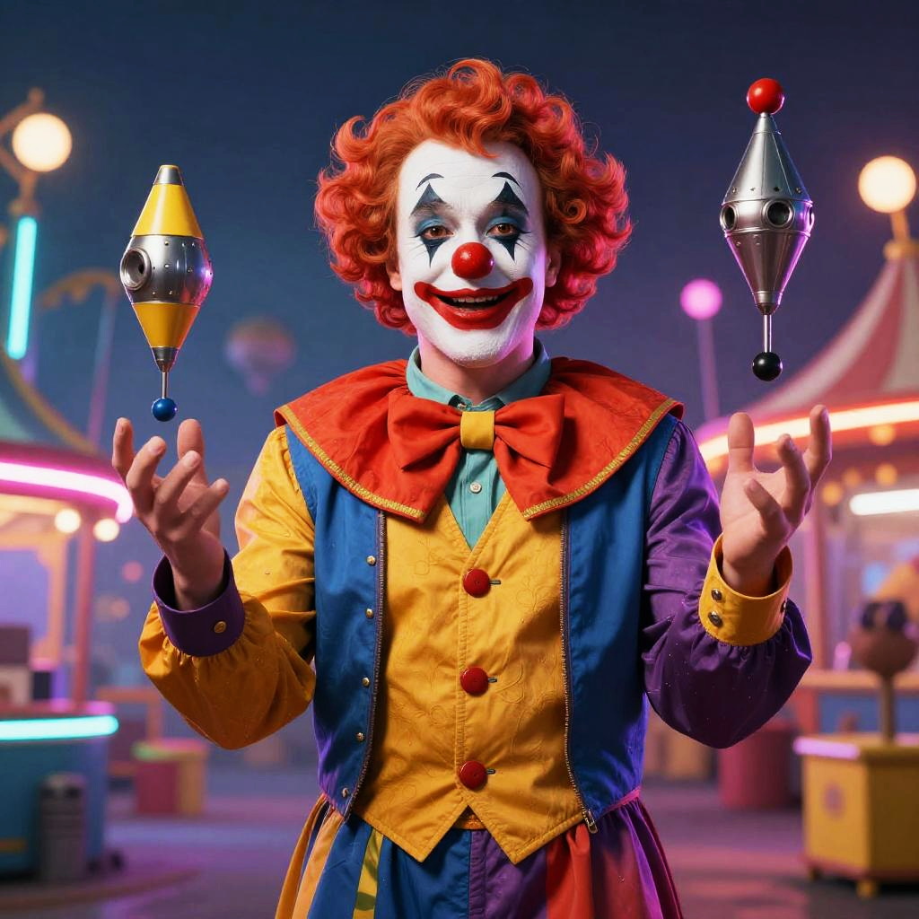 Elon Clown in Futuristic Carnival