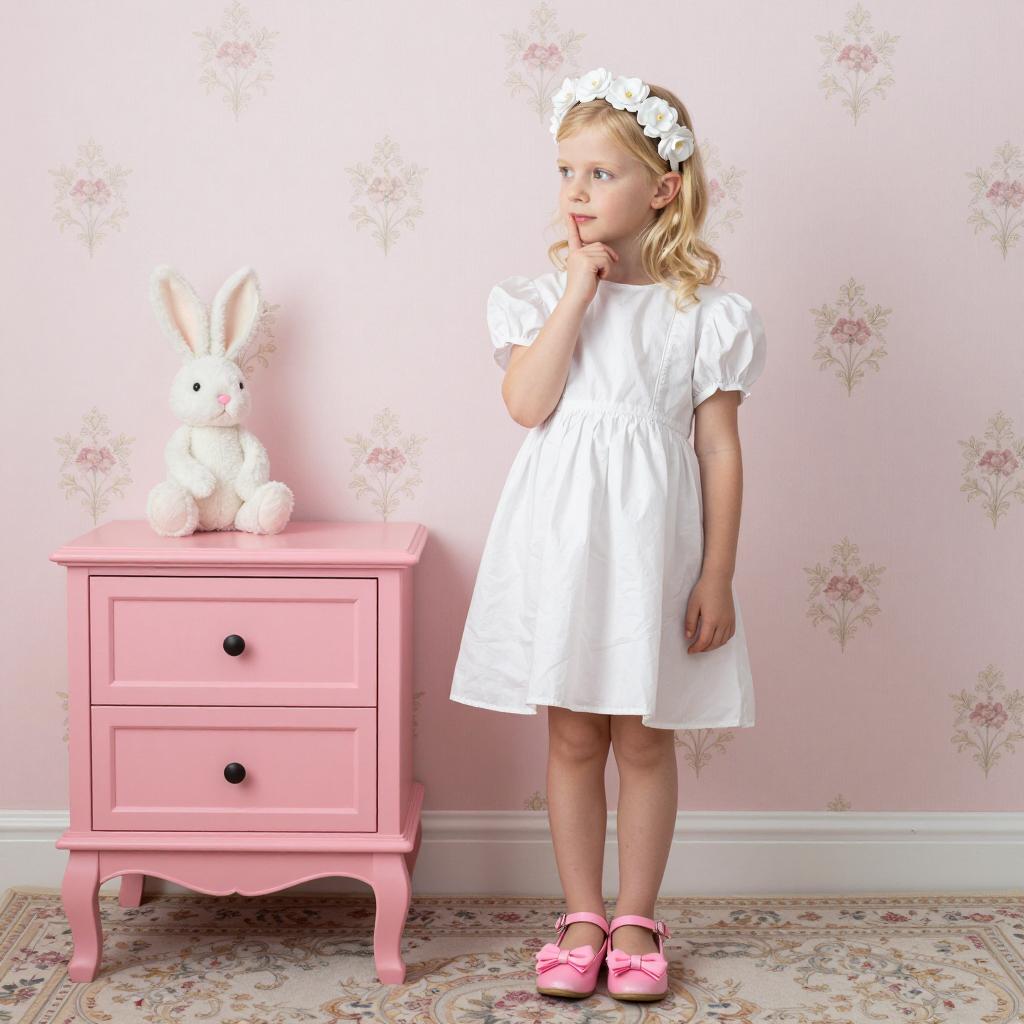 Two children, one sitting on a gray block, the other kneeling, eating grapes. The seated child has a white shirt and brown shorts, mouth open, holding a grape. The other child has a brown dress, holding an orange. Basket with grapes to the left. Dark, ured background. Realistic, classical-style photograph.