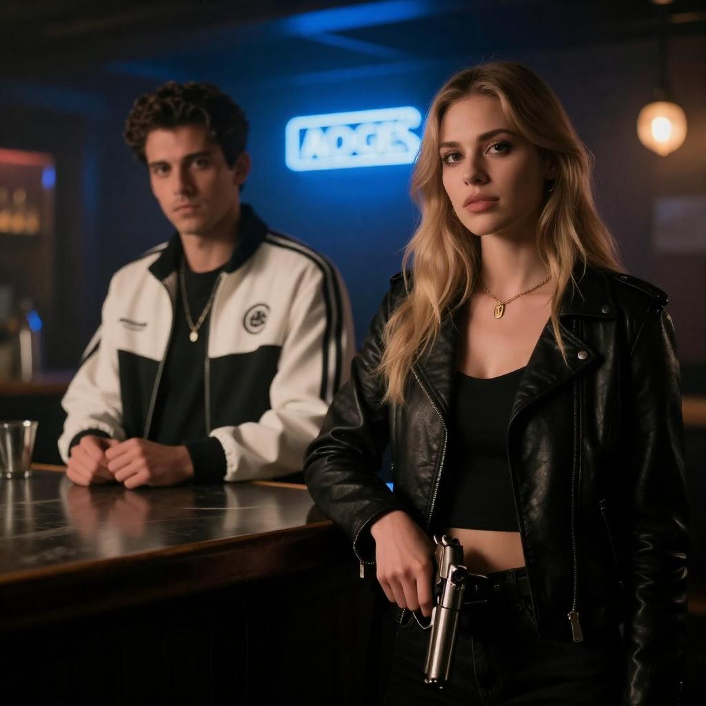 Confident Woman Facing Man in Urban Street Scene