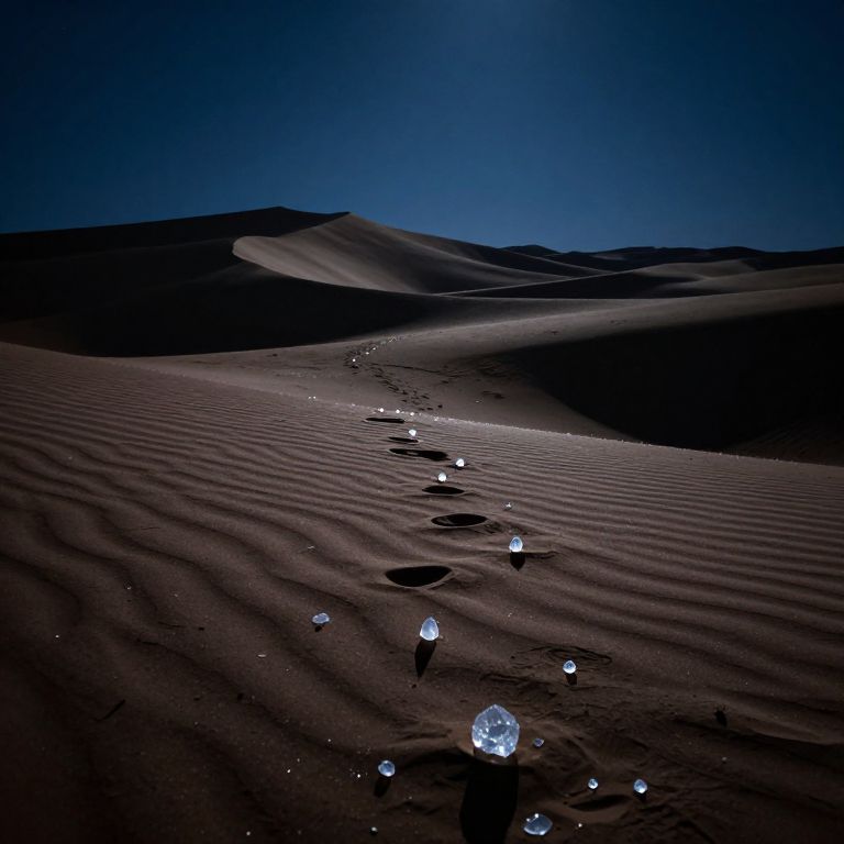 Moonlit deserts sparkle with crystals that sing lullabies when stepped upon, crafting landscapes that shift with each note sung.