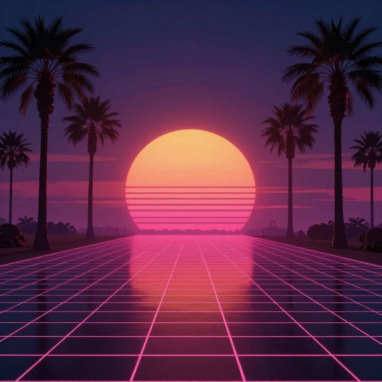 Futuristic 80s Synthwave Sunset Landscape