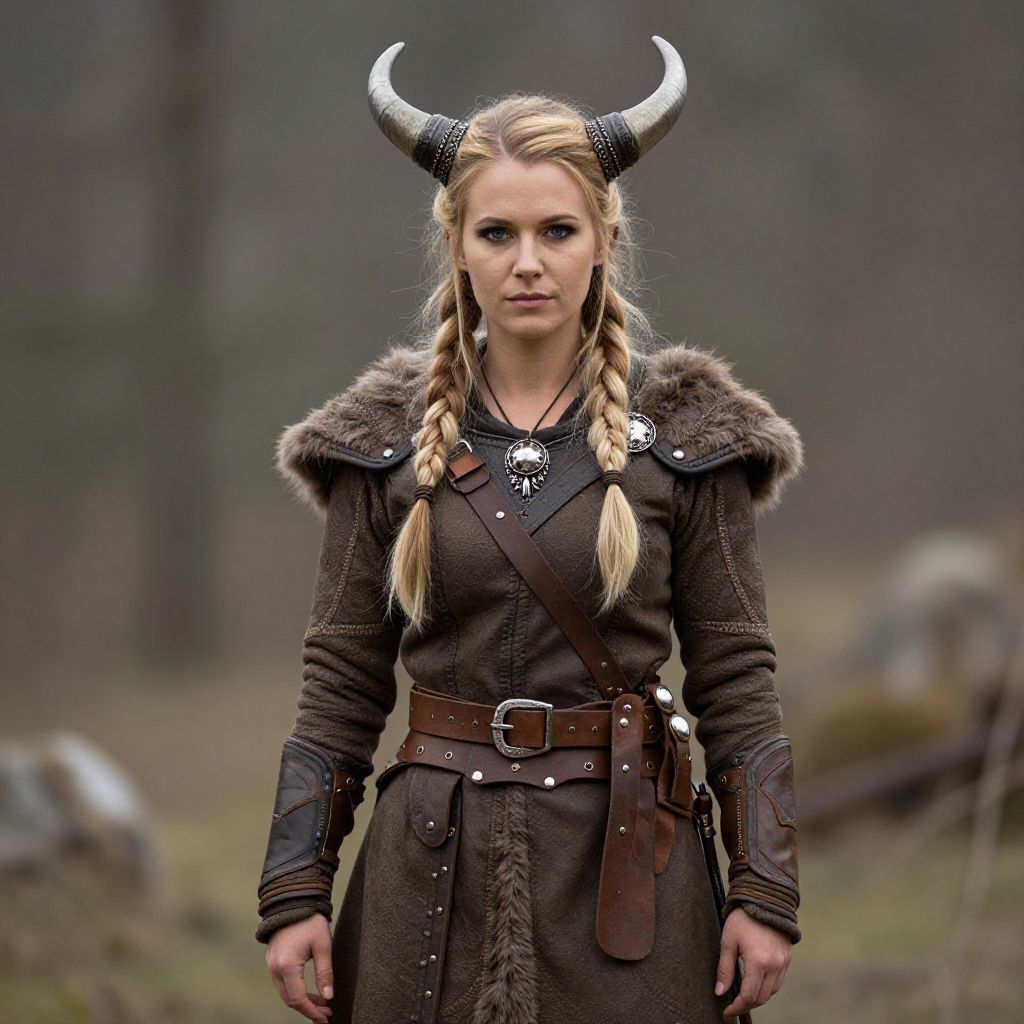 Viking Warrior Woman with Horned Headpiece