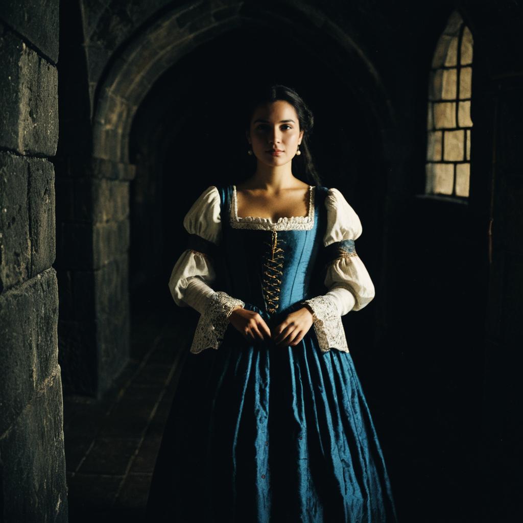 Isabela Madrigal Halloween, image of a woman in a medieval dress in a dark room