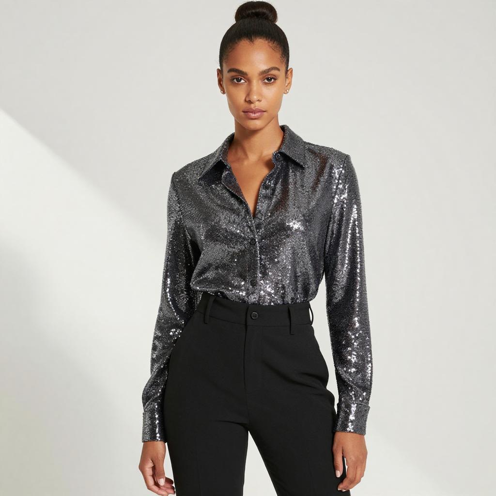 Confident Woman in Chic Sequin Outfit