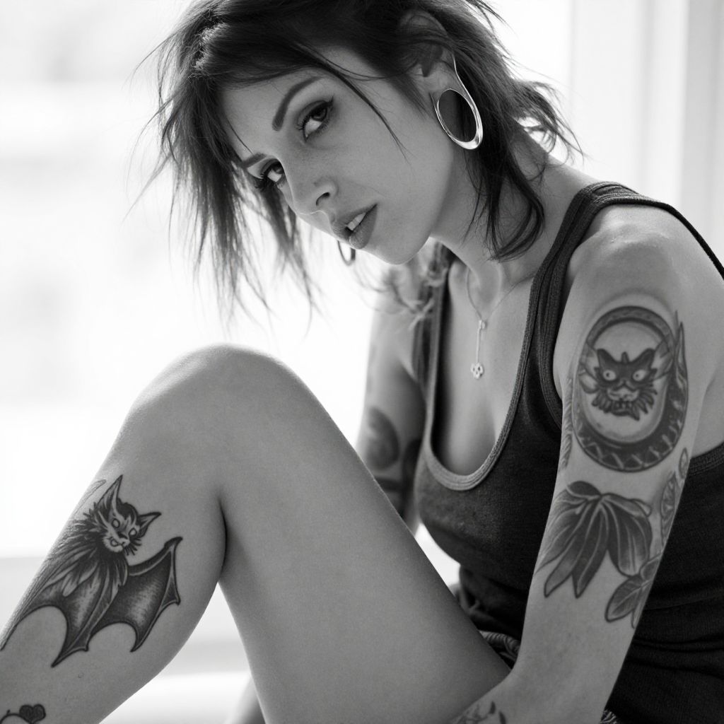 Moody Black-and-White Tattooed Woman