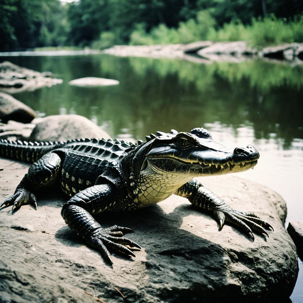 A close-up selfie of three alligators with different expressions in front of the iconic The Shard, taken at golden hour with cinematic lighting. The animals are positioned close to the camera with their heads touching, mimicking a selfie pose, showing joyful, surprised, and calm expressions. The background features the full architectural detail of The Shard, softly illuminated, with a warm ambient atmosphere. Shot in a photographic, realistic cartoon style, high detail, 1:1 aspect ratio.