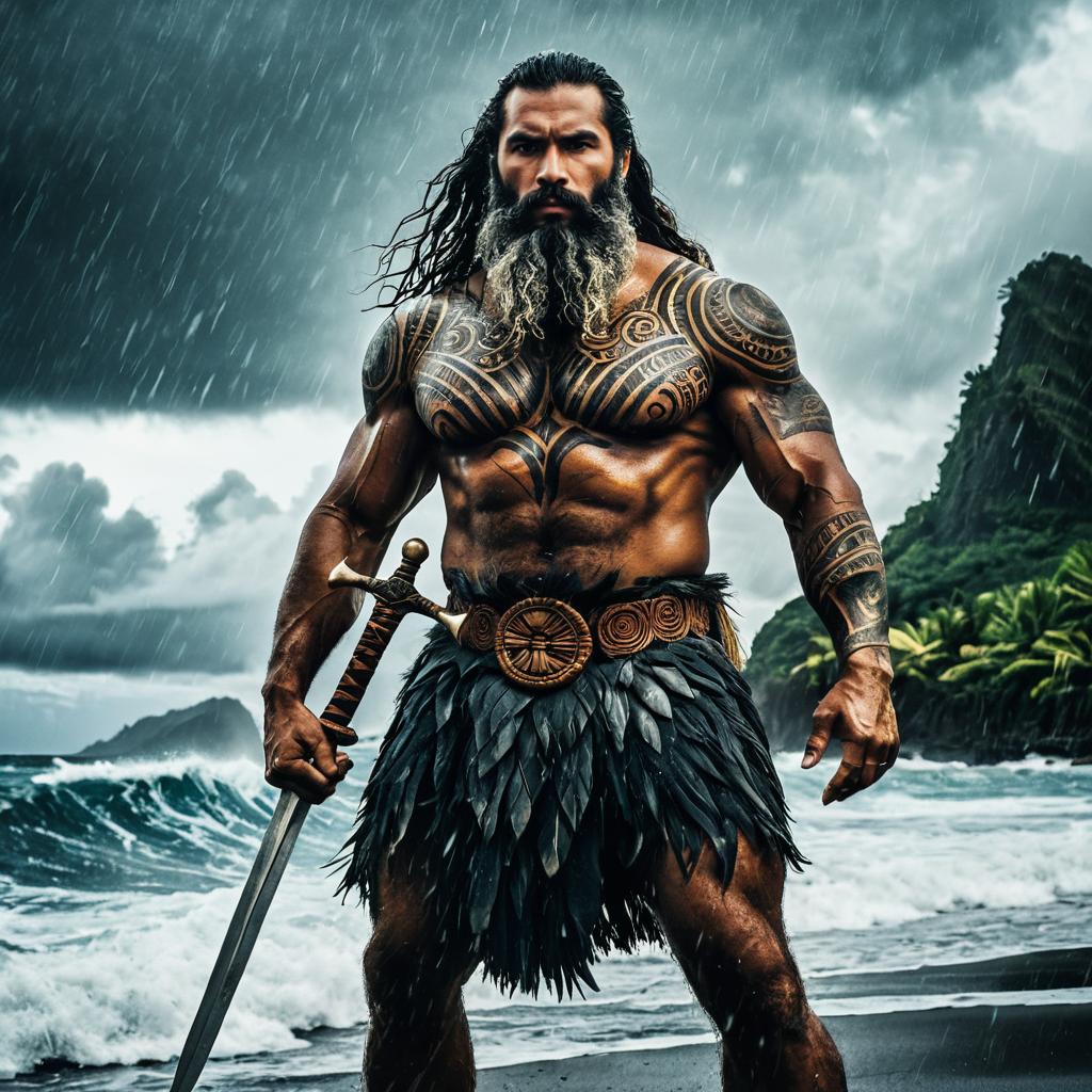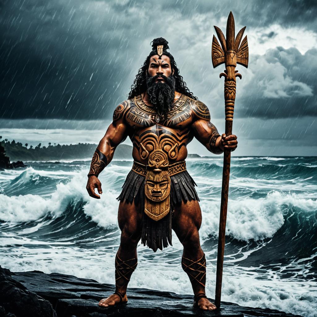 Mythical Greek Warrior Holding Trident by Stormy Sea