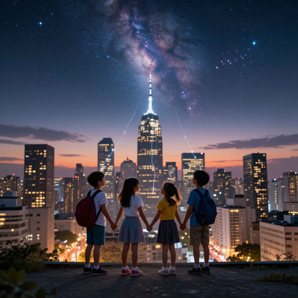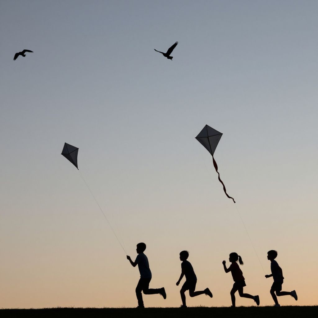 In a city where concrete walls whisper echoes of the past, children chase the wind with kites made of dreams, their laughter a melody of hope tethered to the sky, where hearts float like stars in the fading light.