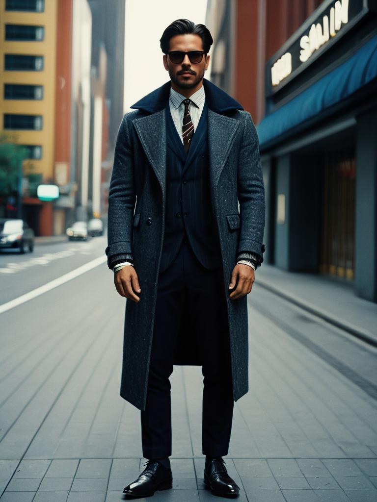 Man in Modern Fashion Outfit, cinematic realism, sharp editorial fashion photo --sref 1388