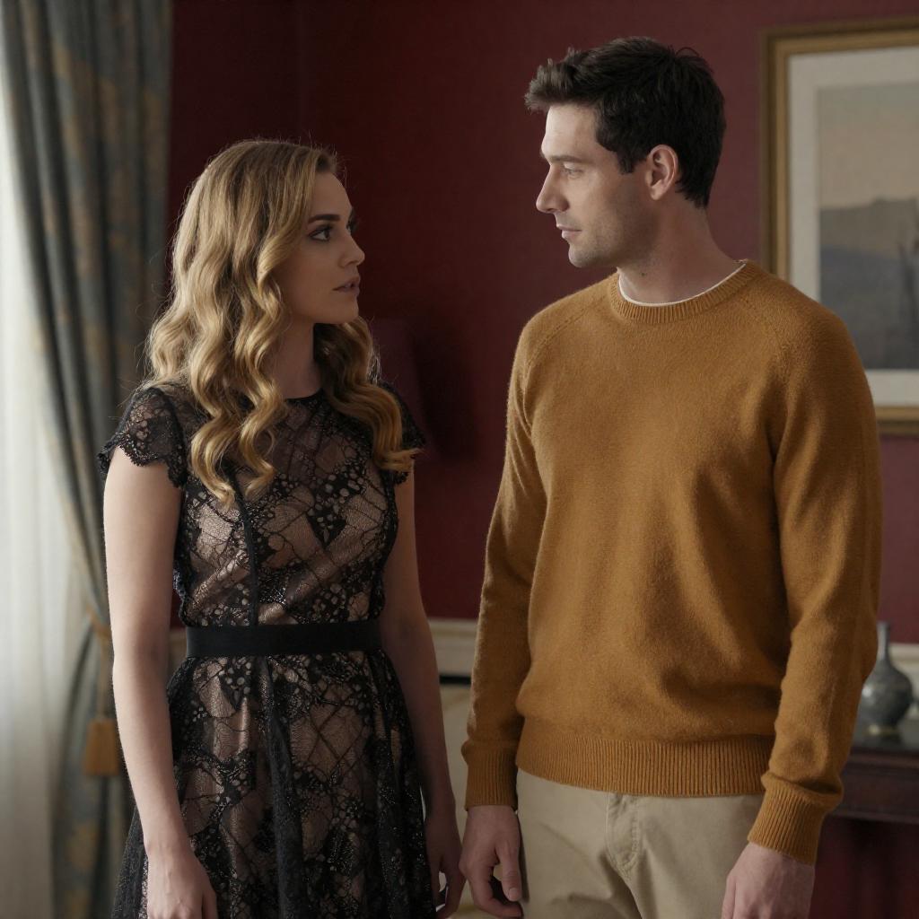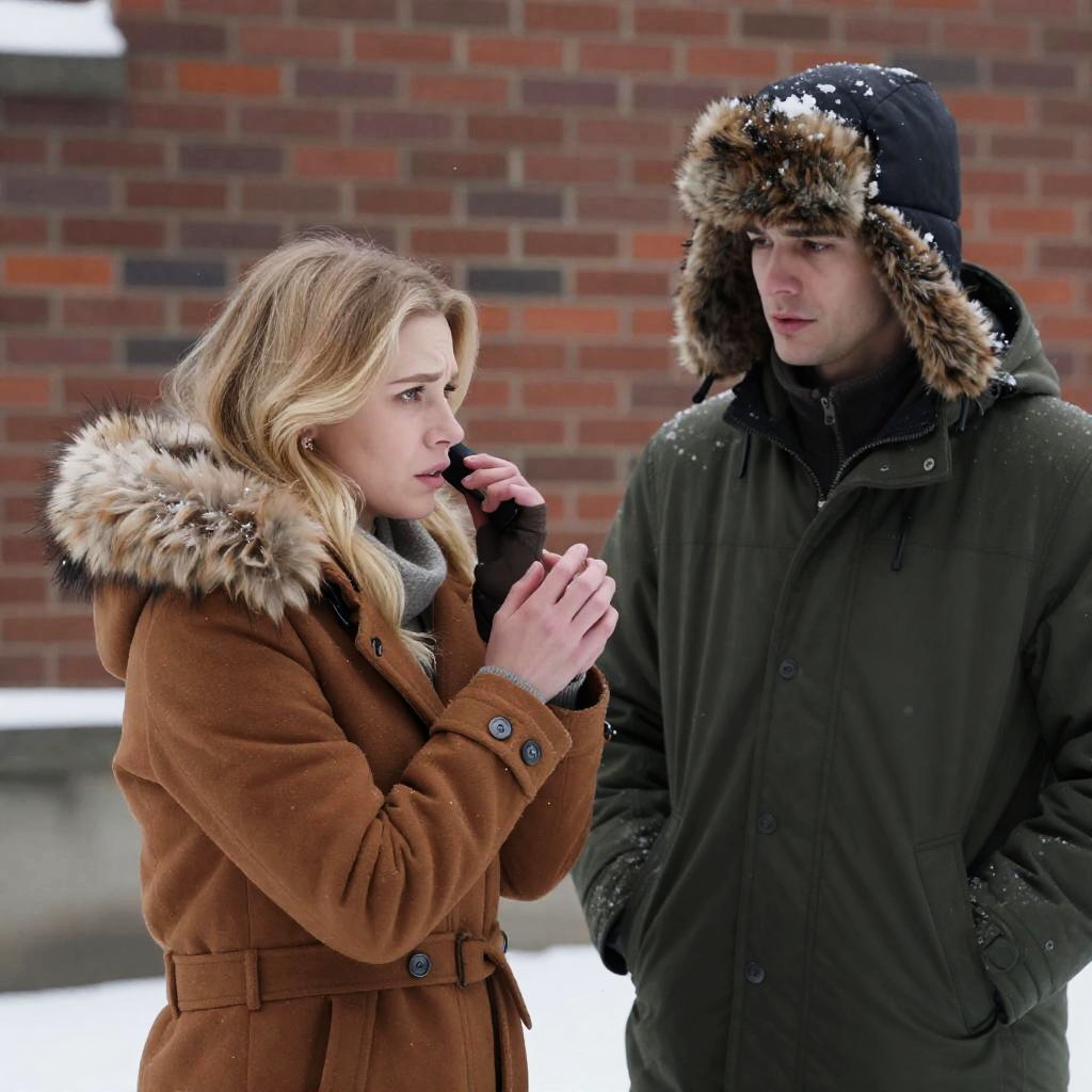 Serious Man with Gun and Surprised Woman in Winter Clothing