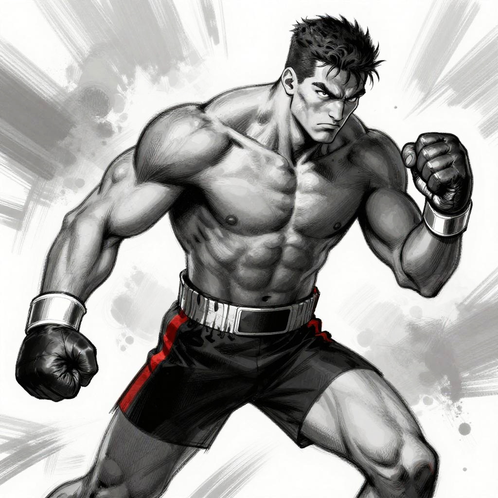 Muscular Fighter Mid-Action Sketch