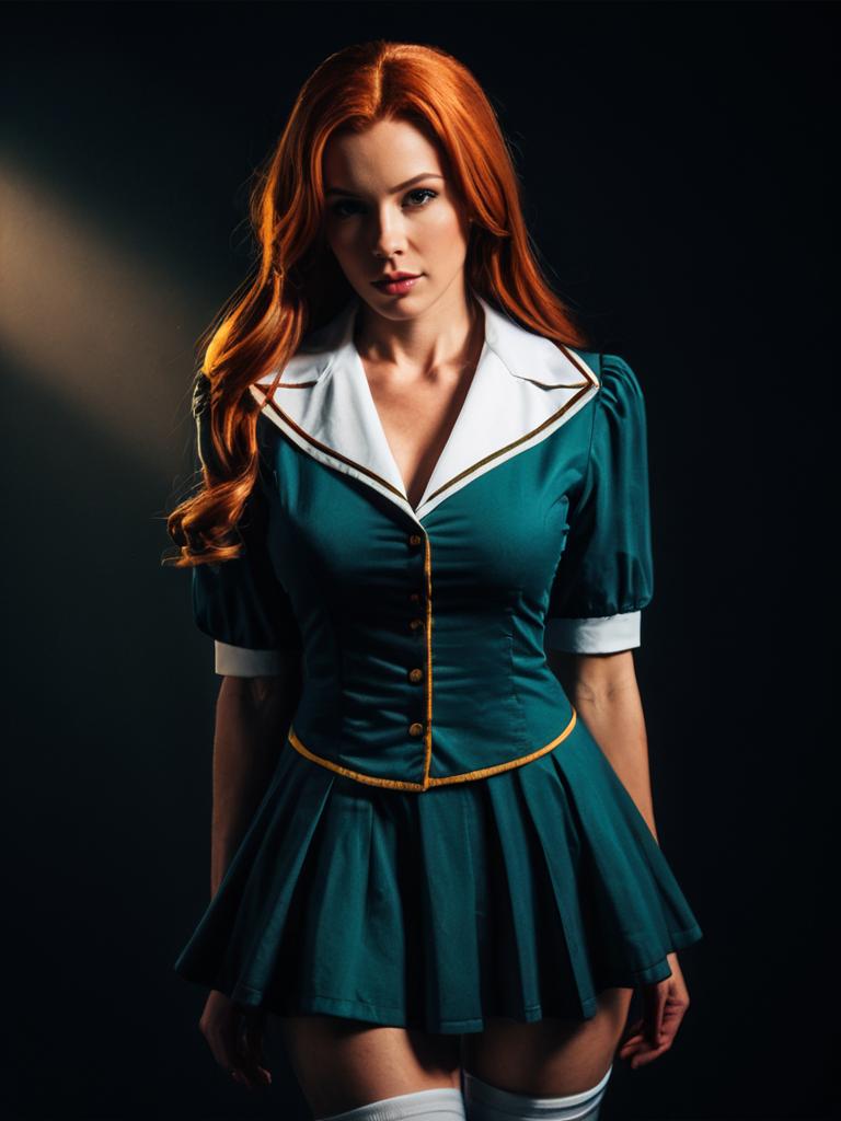 Sexy cosplay woman character wearing Eda costume. Realistic photo. Jane Doe dressed as Eda --sref 1404