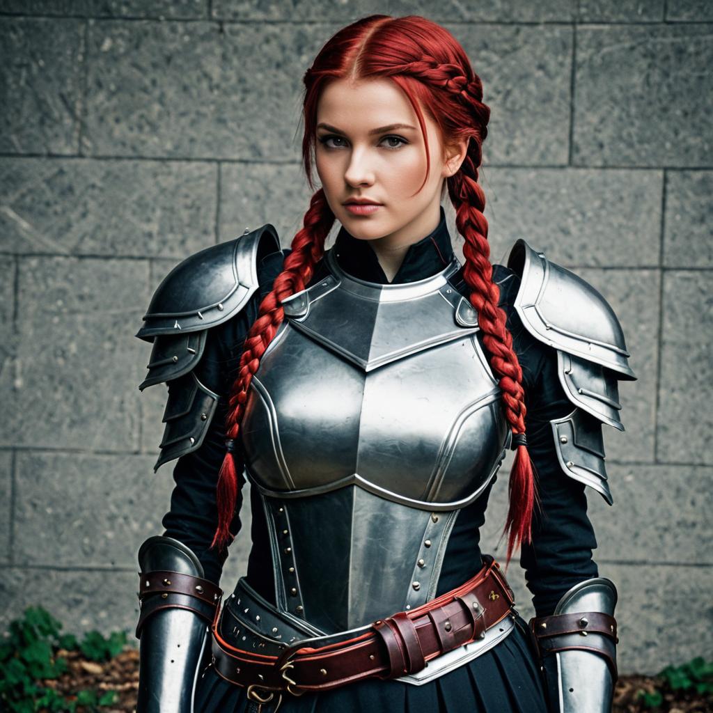 Roman legionary cosplay,1girl, solo, armor, blonde hair, braid, weapon, sword, long hair, shoulder armor, blurry, blurry background, bracer, holding, vambraces, realistic, breastplate, outdoors