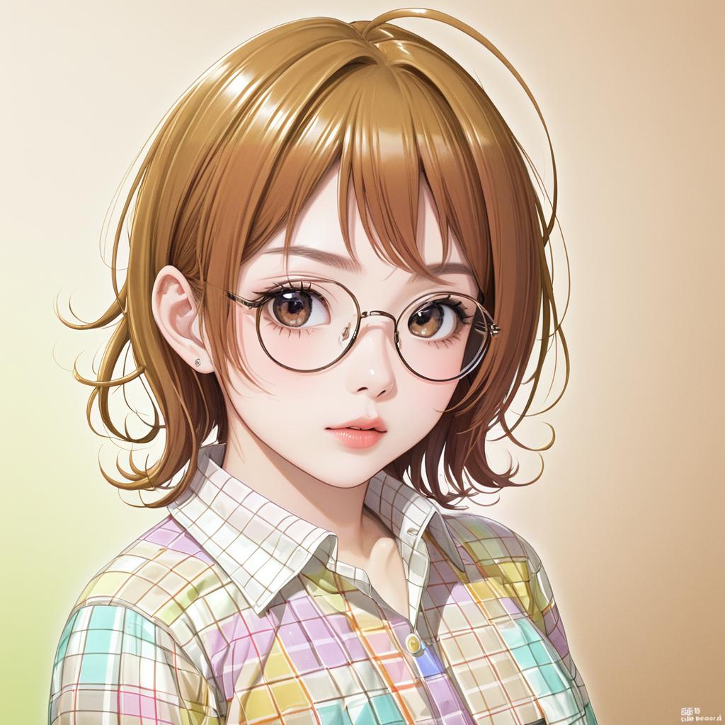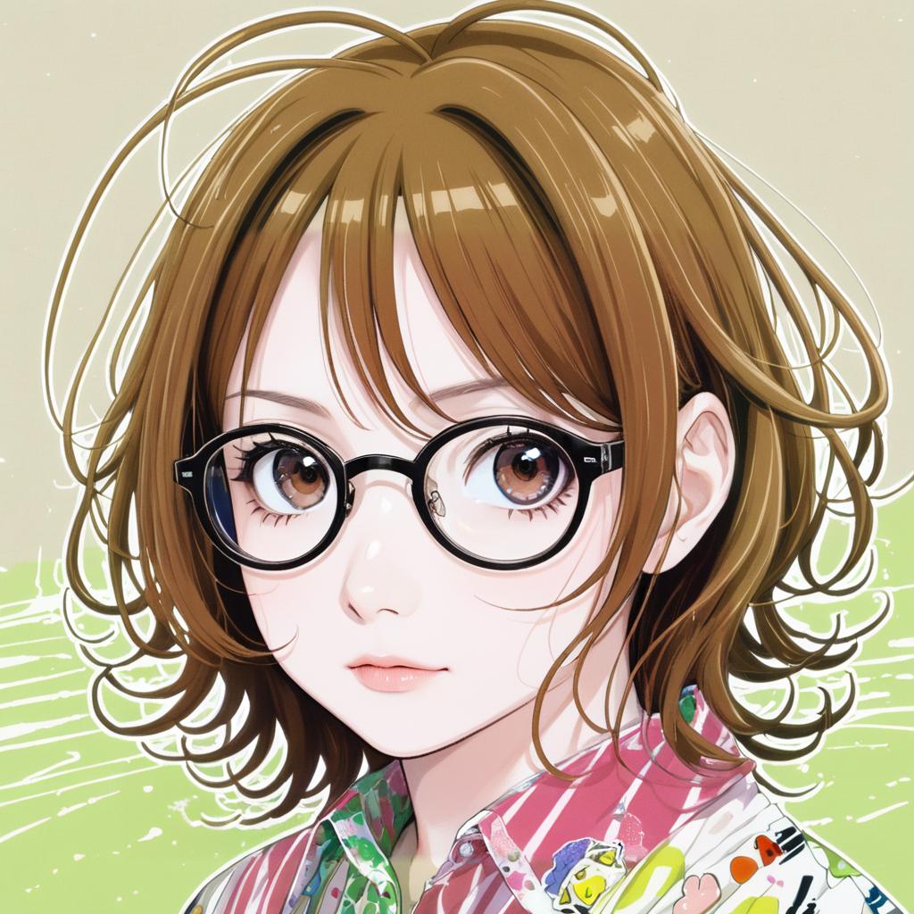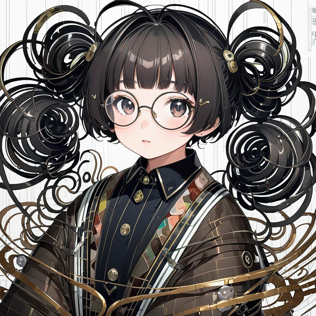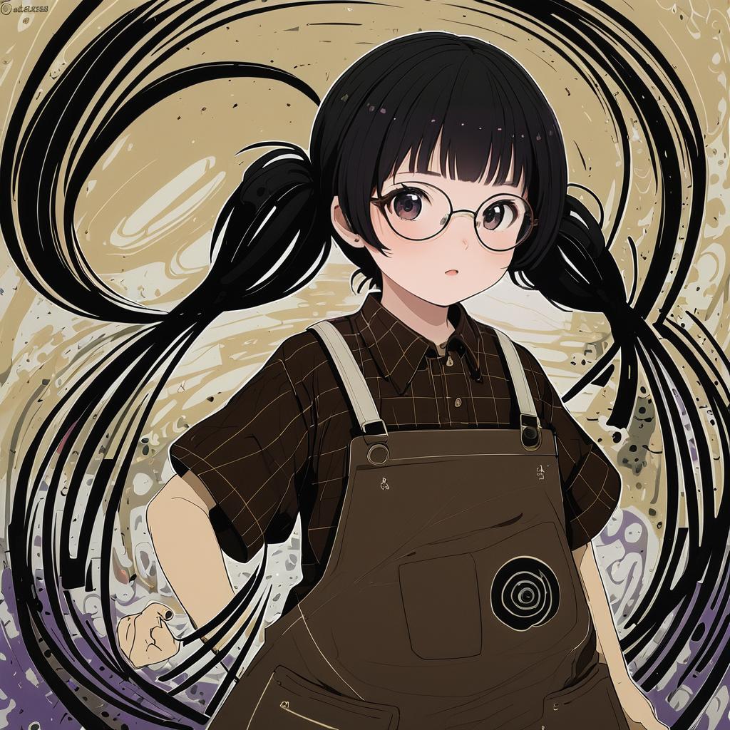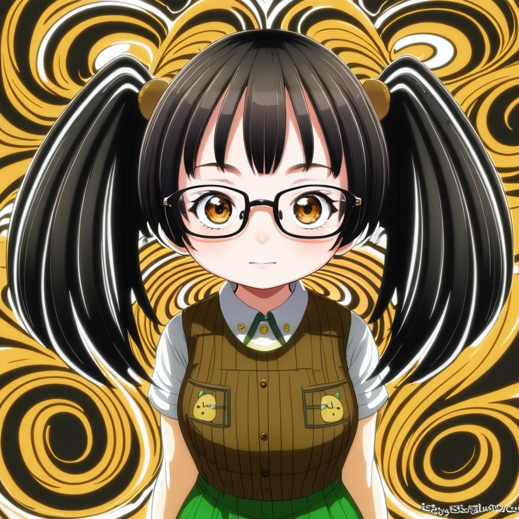Amasawa yuuko, dennou coil, 1girl, glasses, brown hair, black hair, short hair, twintails, by artist kawacy, anime