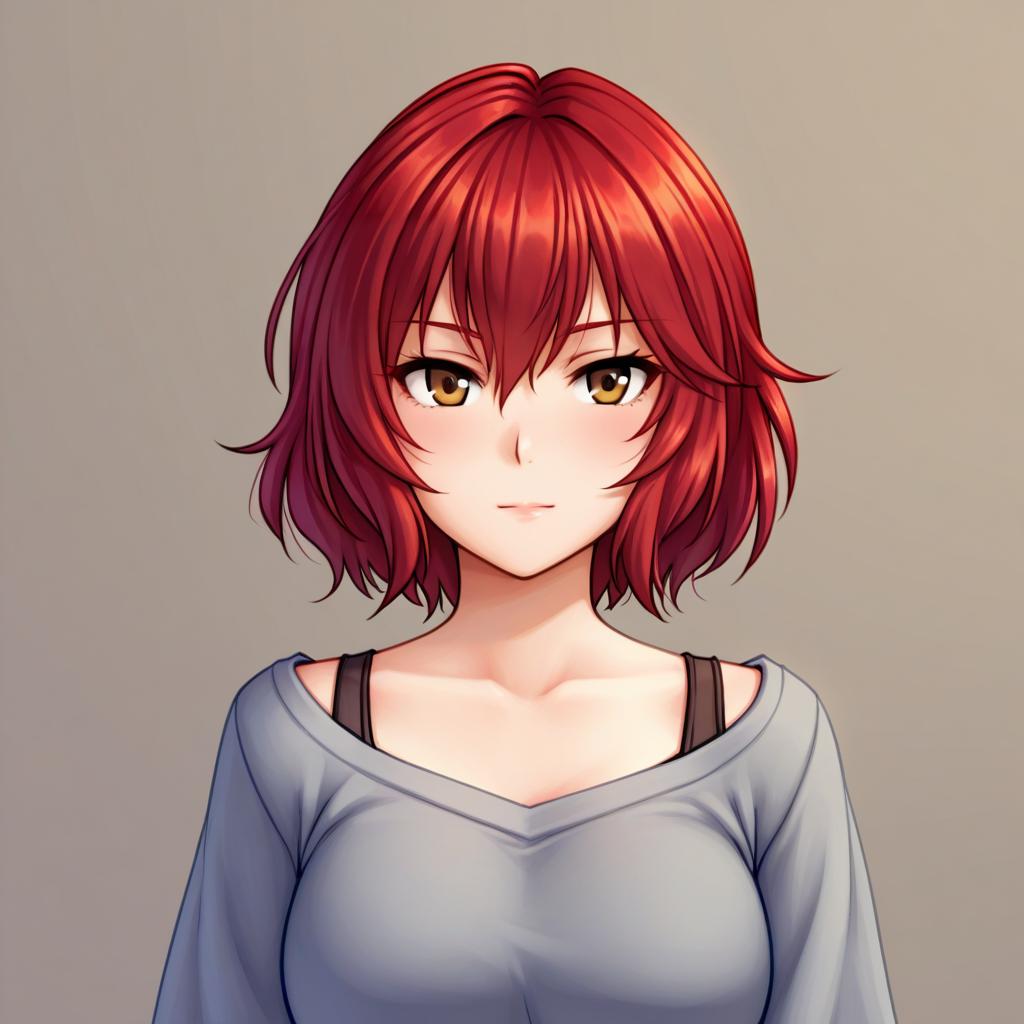 Murakami tomoe, idolmaster, 1girl, brown eyes, red hair, short hair, by artist monorus, illustrious