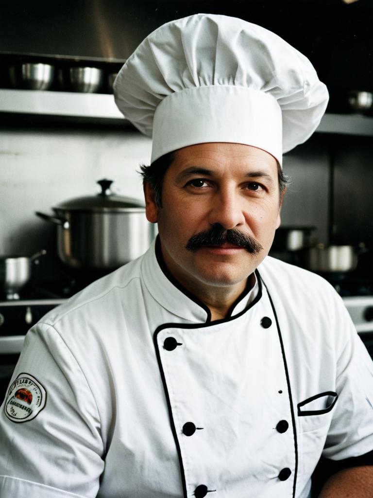 Man in Chef Costume, photorealistic editorial humorous portrait